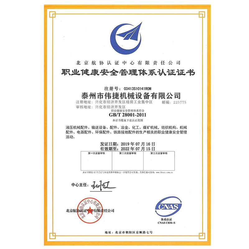• 偉捷機械設備資質證書